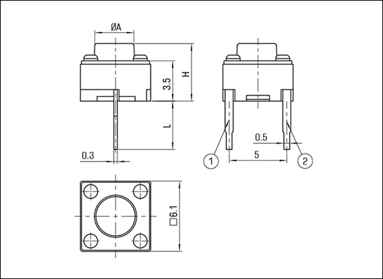 | TASN6060-10XX / 按入式 / 6.0×6.0 / 顶按 / 平头 / 中二脚型 | |||||