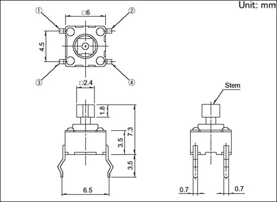 | 按钮高度 | h= 7.3mm / Custom | ||||
