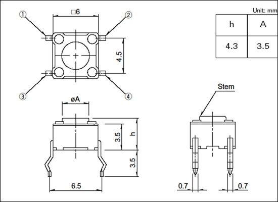 | 按钮高度 | h= 4.3mm / Custom | ||||
